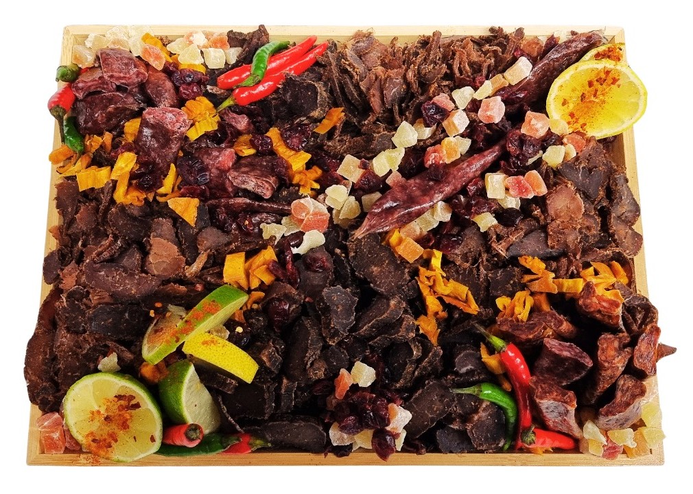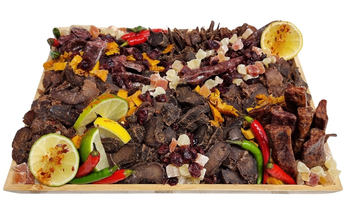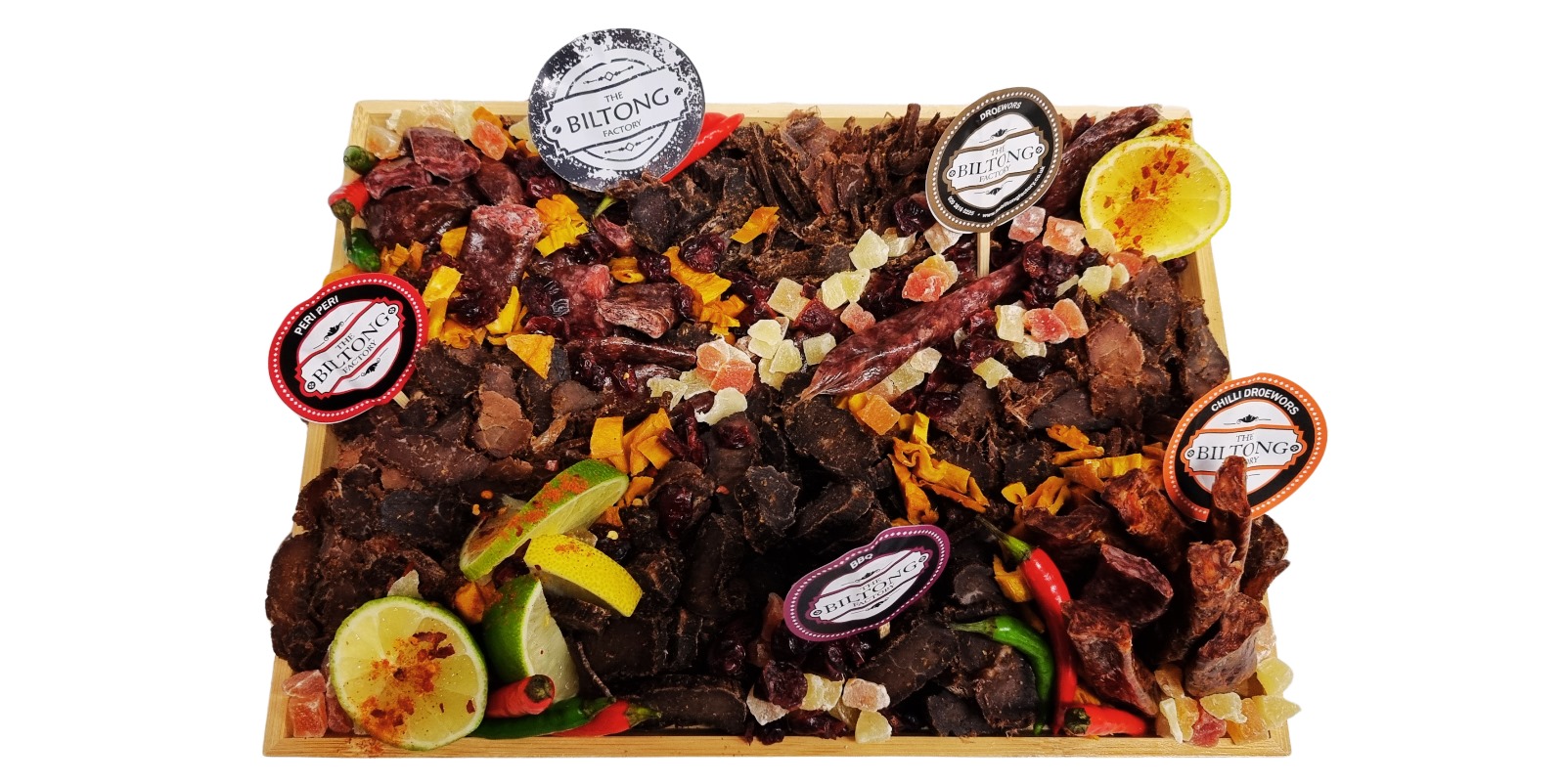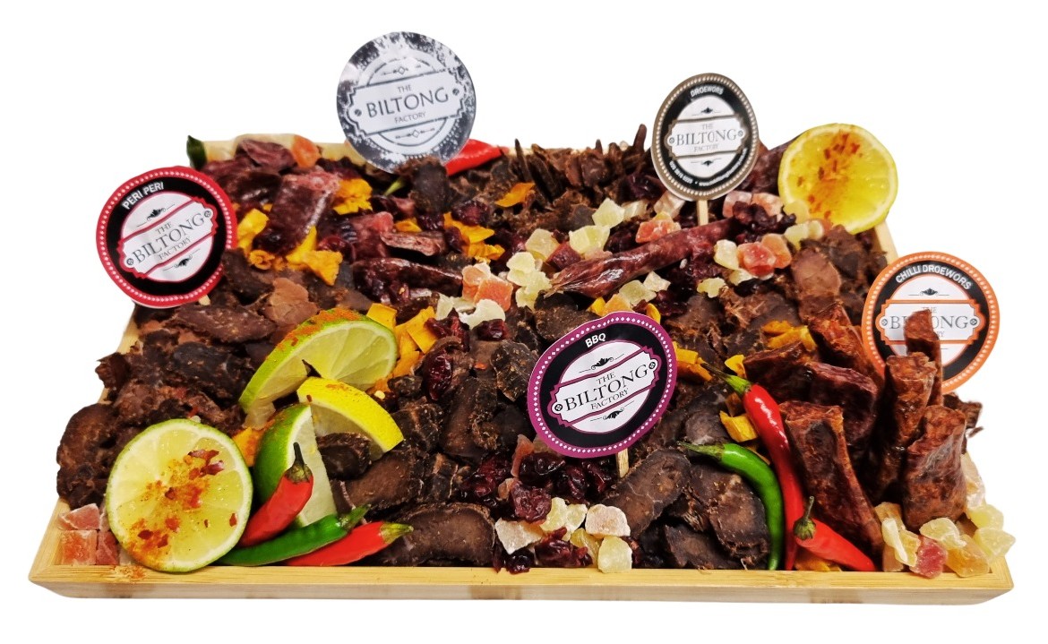 You’ll get a tempting variety of cuts and textures, from soft, wet biltong shavings and thin slices to classic chunky pieces with more bite, so every guest can find their perfect piece. The board is finished with colourful, handpicked accompaniments such as dried fruits, citrus and fresh chillies to make the rich, savoury flavours really pop.